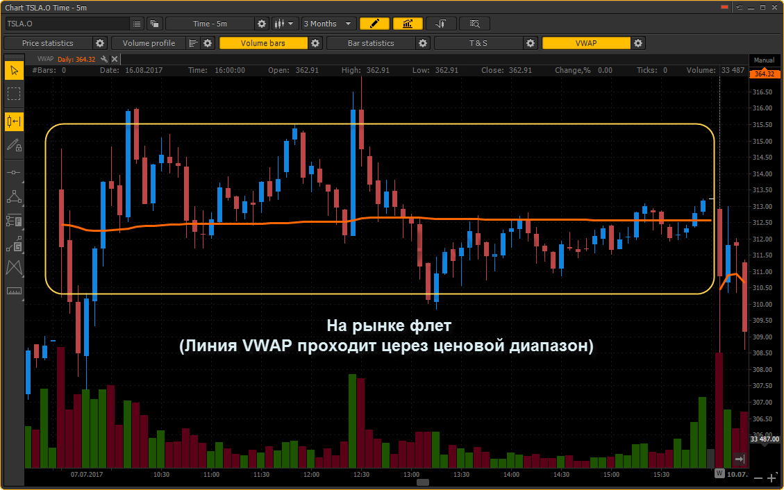 Все торговые платформы, которые работают с объемами, содержат индикатор VWAP в числе других стандартных инструментов.