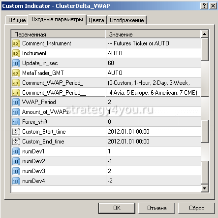 Amount of VWAP — задает число линий в серии (по умолчанию строится 1 линия).