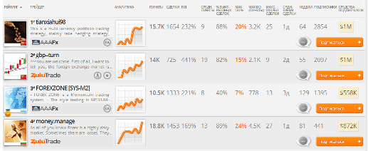Сервис ZuluTrade – это специальный сервис, позволяющий трейдеру подключаться к торговым сигналам более опытных профессиональных трейдеров и как только выбранный профессиональный трейдер совершает ту или иную сделку, в терминале трейдера, пользующегося сигналами, автоматически открывается аналогичная сделка. Такой способ торговли дает возможность копировать выгодные решения трейдера, новичкам – успешно учиться, наблюдать за работой опытных мастеров.