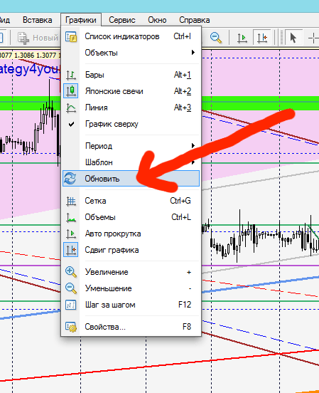 Здравствуйте. Обновил архив котировок, все как вы и описываете, но это не помогло. У меня такая ситуация, прочертил за неделю линию сопротивления, она ее уже пробила, а за день график до нее еще даже не дошел. Что еще можно сделать что бы исправить эту ошибку? За ранее спасибо!!