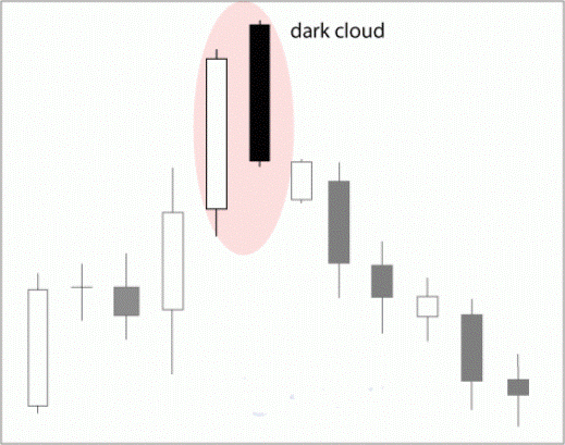 Свечная модель «Завеса темных облаков» представляет собой медвежью модель разворота, которая активно используется в свечном анализе. Паттерн состоит из двух свечей, которые появляются после восходящей тенденции (либо возле верхней границы торгового коридора), он становится сигналом разворота на вершине.