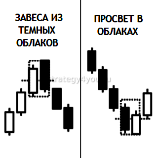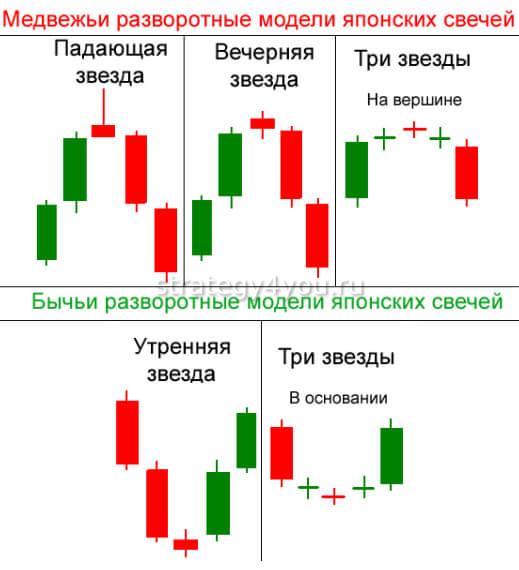 Это свечные модели разворота тренда, которые показывают резкое изменение ситуации на рынке. Являются мощными формациями, требующими к себе внимания.