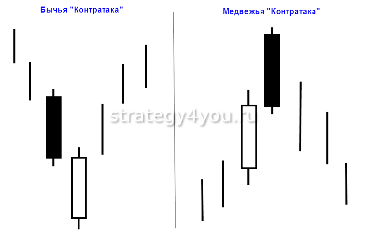Это 2 разноцветные свечи, у которых точки закрытия расположены на одной ценовой позиции, называемой «линией баланса».