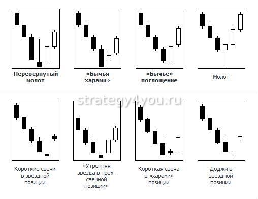- на разворотные свечные паттерны.
