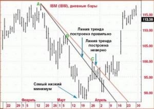 Но бывает, что цена ведет себя так, что даже 2-х точек для построения не найти. В этом случае не нужно делать чертеж, следует подождать, когда будет сформирован очередной максимум или минимум.