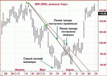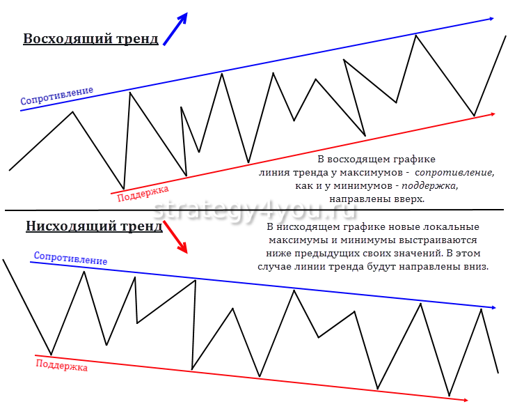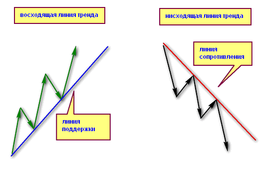 Трендовые линии можно проводить следующим образом: