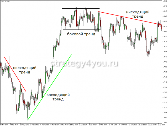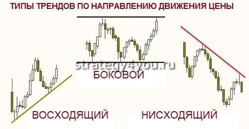 В этом ему помогут трендовые линии, при этом сам тренд может быть следующих видов: