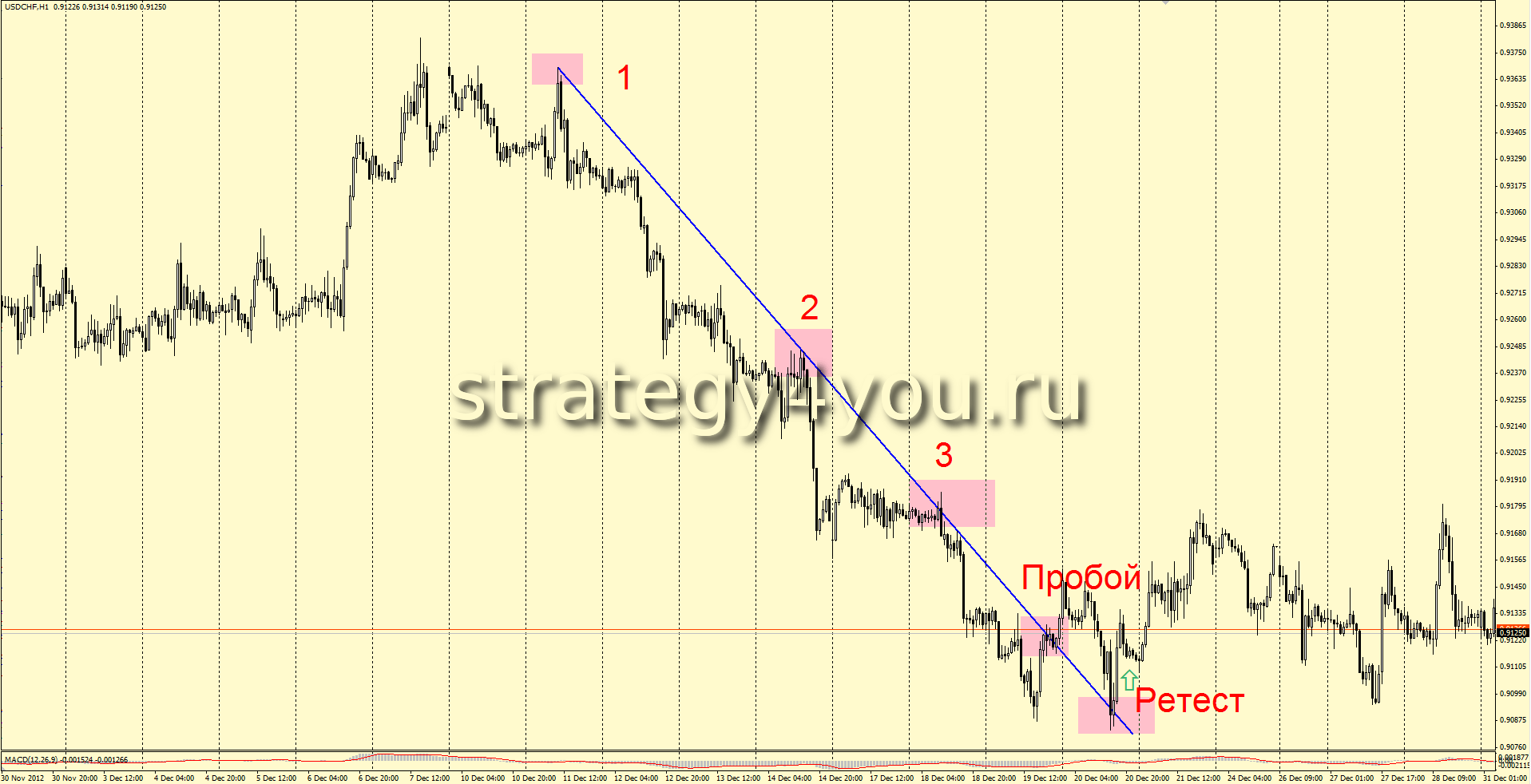 Пример стратегии форекс на линиях тренда: