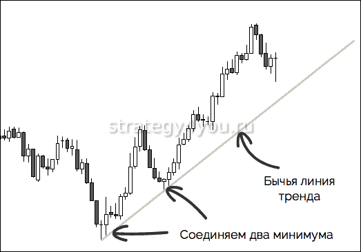 Тренд должен определяться четко, поэтому не нужно ничего придумывать. Начинающие трейдеры могут руководствоваться следующим правилом: линию строят по 2 точкам, а третья должна служить в качестве подтверждения.