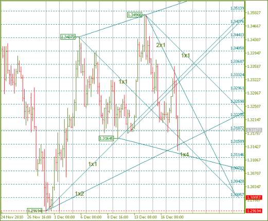 Сетка Ганна представляет собой ряд нисходящих и восходящих линий, который накладывается на график цен и является довольно эффективным инструментом графического анализа. Ганн считал, что линия в 45 градусов прекрасно способна показать долгосрочные тенденции на рынке. Данная линия может быть нисходящей или восходящей.