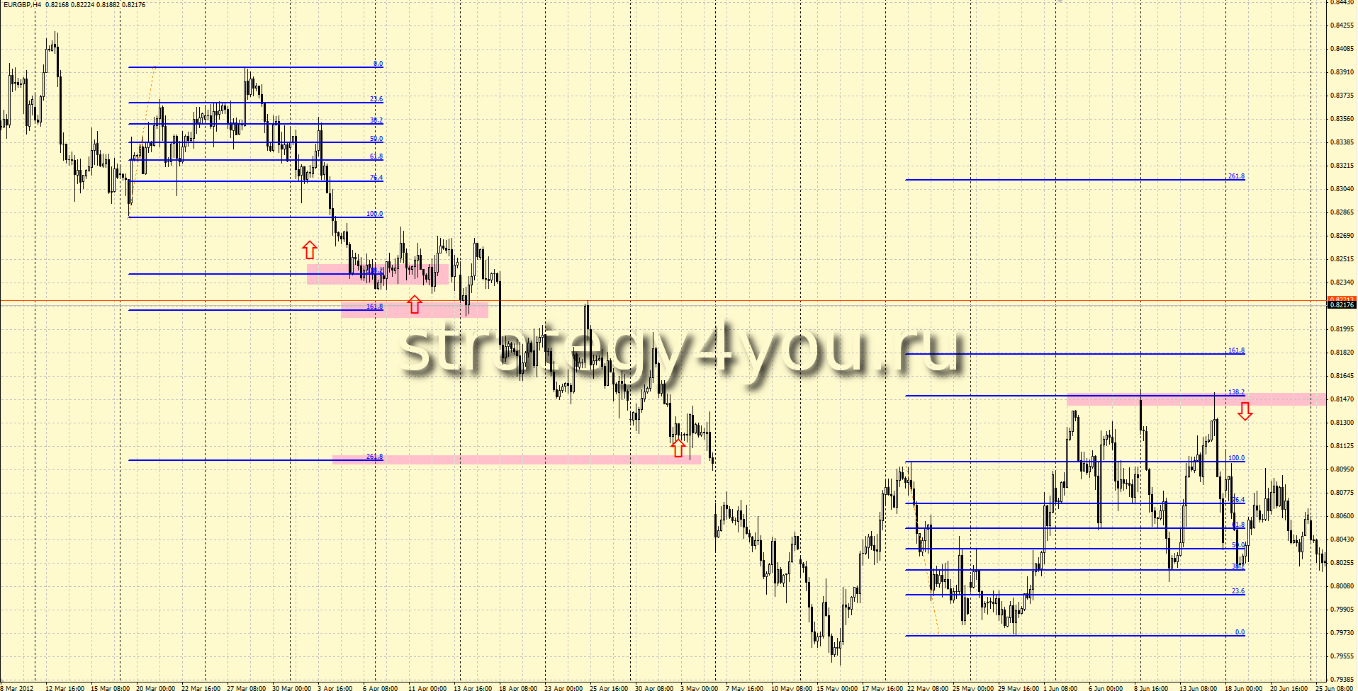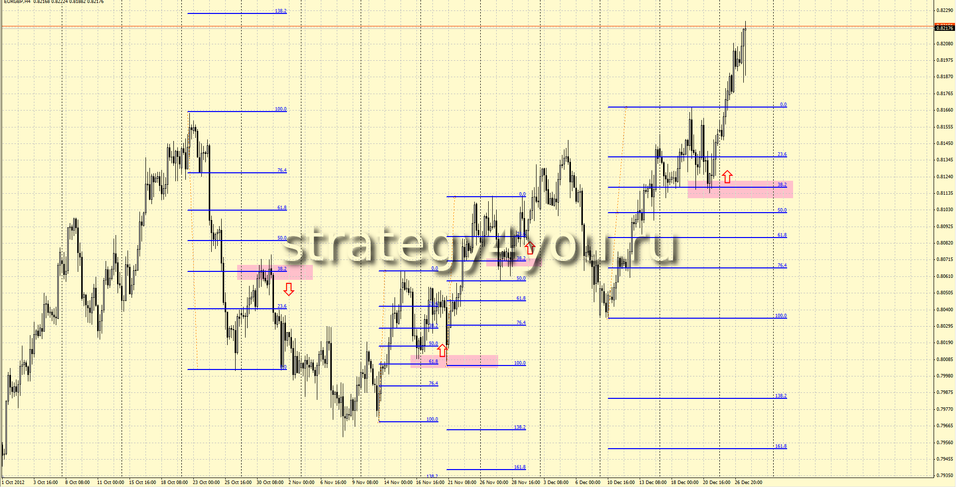 Так же стоит помнить, что чем старше временной интервал валютной пары и следовательно построенный Фибоначчи, тем он важнее, по сравнению с мелкими уровнями Фибоначчи.