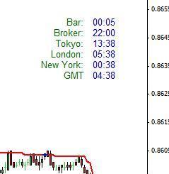 Индикатор выводит на экран торгового терминала такие данные: время после того, как был открыт последний бар, время GMT, время терминала (брокера или диллингового центра), время в различных городах мира.