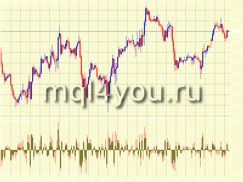 Недавно мне пришло письмо: Уважаемый Александр Парнюк! если вас не затруднит подскажите пожалуйста как написать индикатор на основе 4х цен свечного графика? Визуально это должно выглядеть как обычный свечной или баровский график только свечи не показывают тренд а выровнены по цене открытия по нулевой оси, т.е. бычьи свечи будут над осью Х а медвежьи под ней но цена открытия всегда на ней и главное тени (весь обьем взятого интервела времени) можно конечно представить как макд только в столбце тело свечи отображено одним цветом а тени другим чтоб явно читались четыре цены.