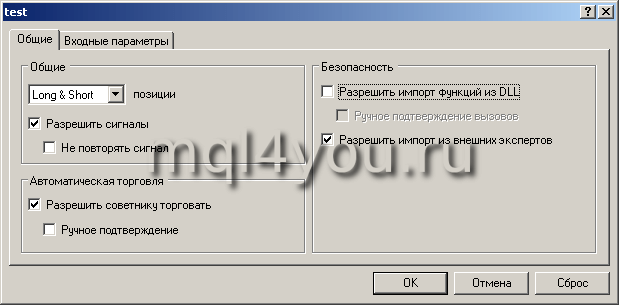Использования DLL в языке MQL4 открывает практически неограниченные возможности, но вместе с тем таит и опасности. Вирус написать навряд ли удасться, а вот другой вредоносный код (например: для воровства паролей) вполне возможно. Поэтому разработчики из MetaQuotes ввели ограничение на запуск скриптов и советников Forex с DLL: