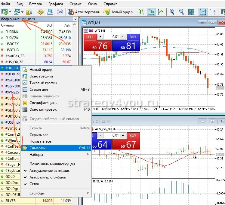 Перед тем как торговать, получить доступ к основным настройкам можно следующим образом: