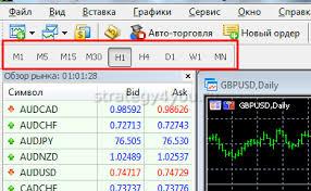 - Меню с таймфреймами. В верхней части окна предусмотрено несколько вкладок, с помощью которых можно переключать таймфреймы.