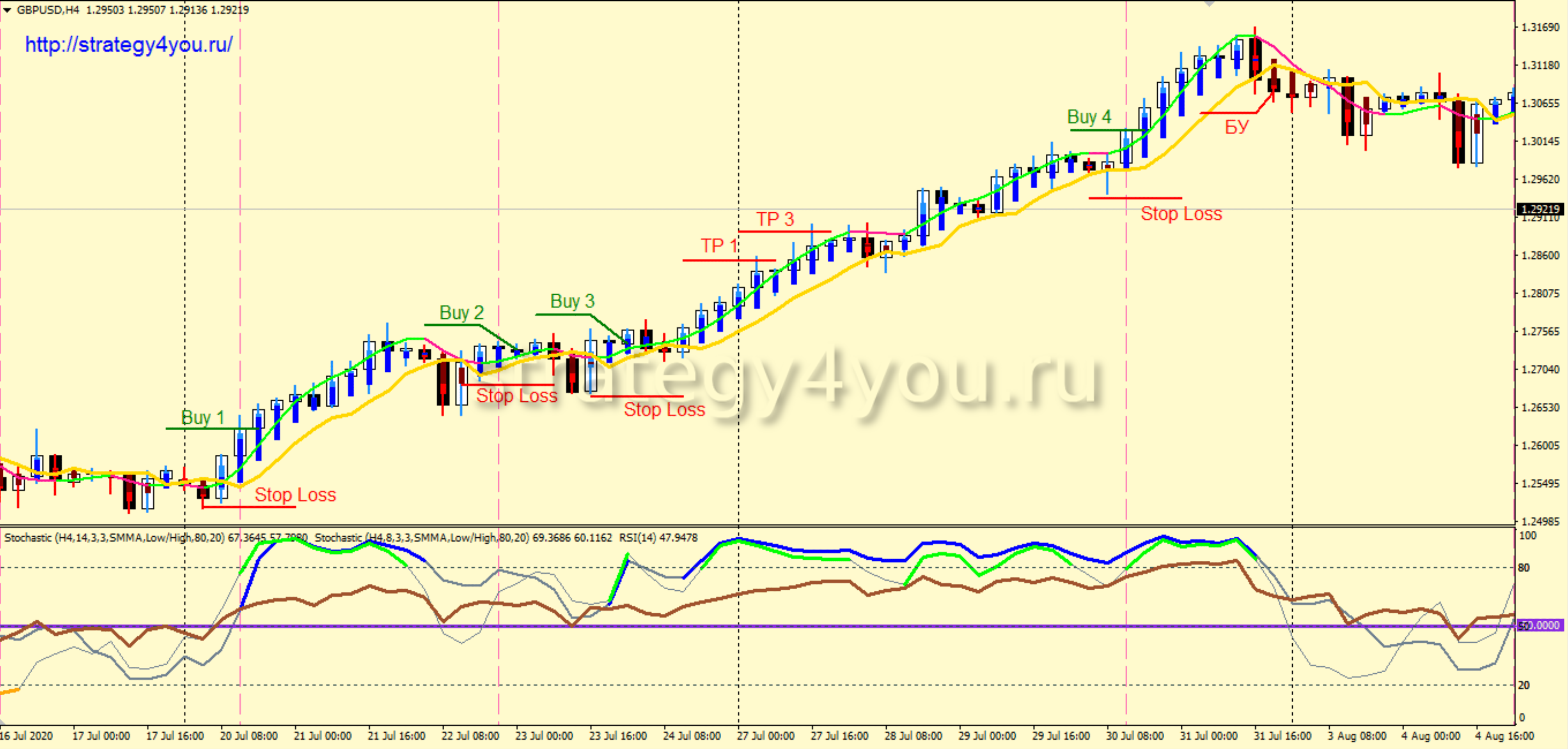 Эта стратегия работает только на Трендовых движениях. На Флете будет слив, если он продлится хотя бы 1 неделю.