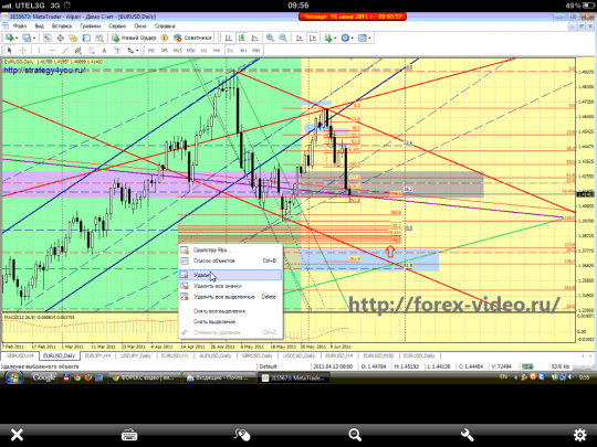 рисунок 4 – есть возможность установки и удаления графических построений в МТ4 без каких-либо проблем удаленно. Для этого придется лишь привыкнуть выполнять все функции, используя сенсорный экран планшета ipad