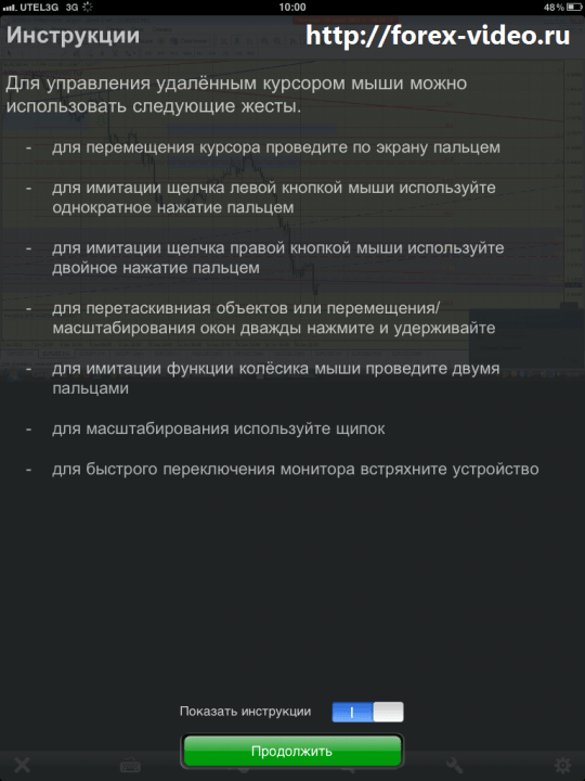 Один из предыдущих видео-обзоров рассматривал мобильный терминал iTrader для ipad, который обладает рядом преимуществ и недостатков, а в данном обзоре будут рассмотрены особенности управления торговым терминалом Metatrader 4 с использованием удаленного доступа с iPad к компьютеру.