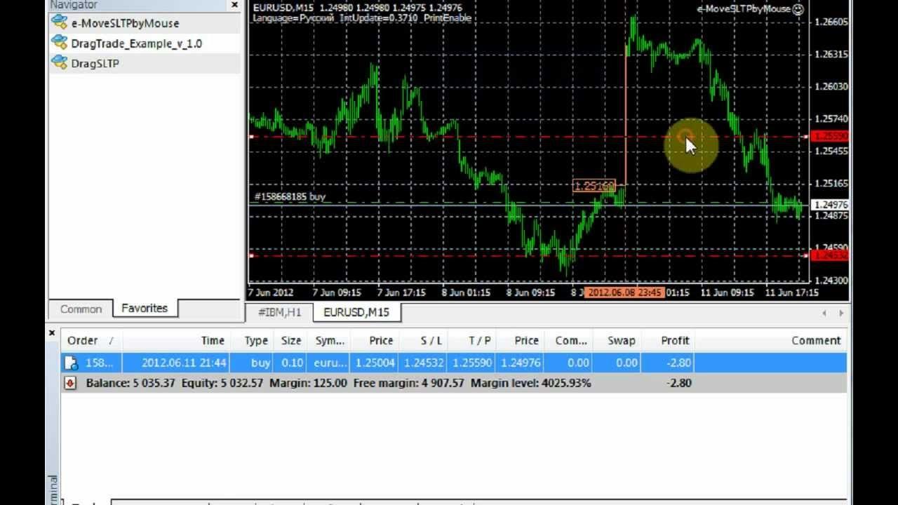 Второй способ Drag-and-drop в более обновленных версиях терминала MetaTrader 4 совершается за счет следующих действий: