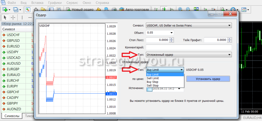 Как установить отложенный ордер в терминале Metatrader 4