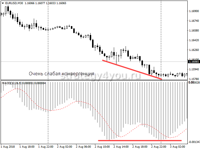 Если она появилась на графике при ниспадающем тренде, а на индикаторе отражается тенденция подъема, может показаться, что индикаторные и графические линии приближаются друг к другу.