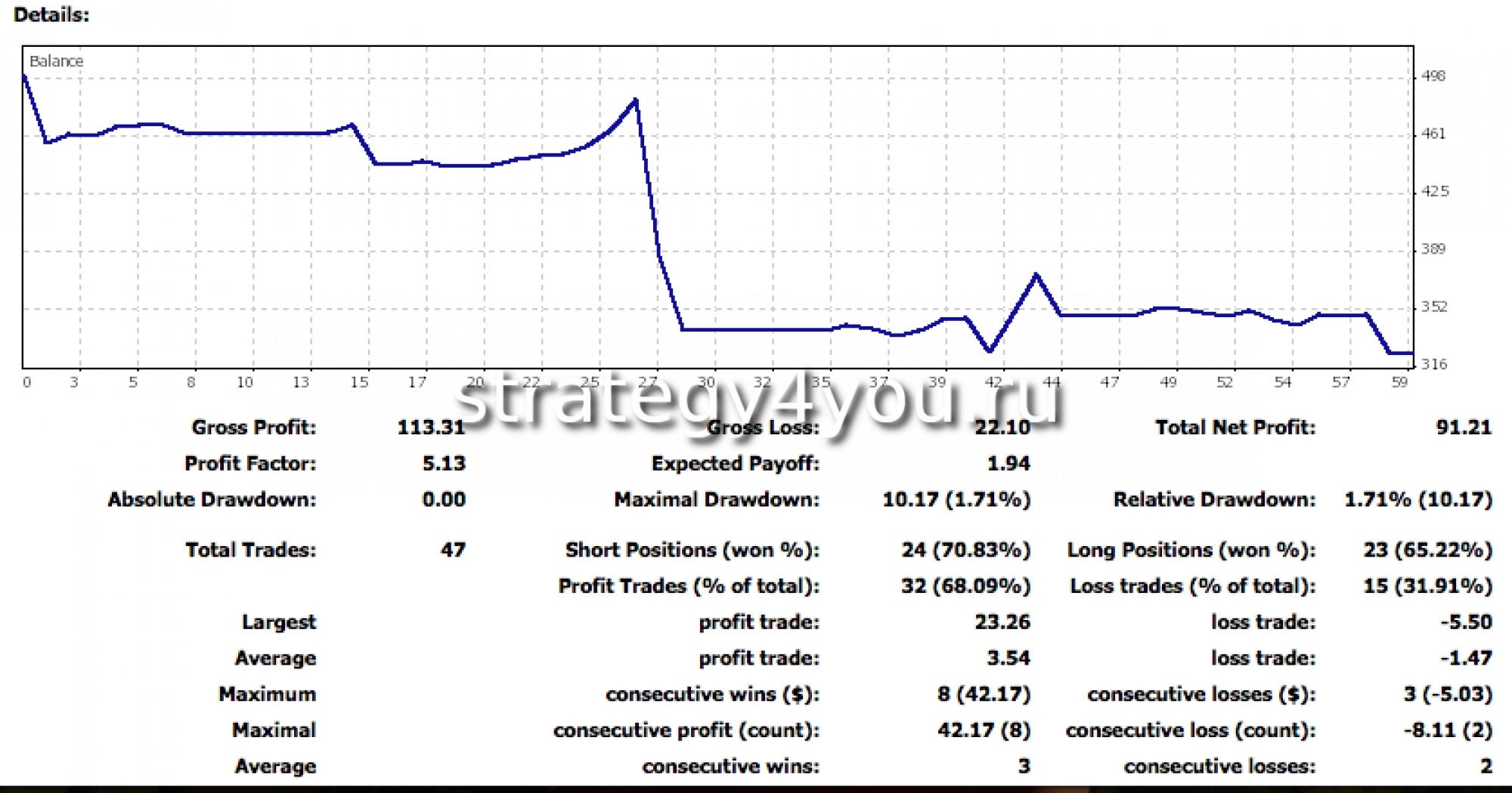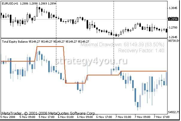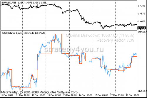 Если отключить учет начальных средств, пополнение баланса и снятие средств со счета, то график покажет эквити по результатам торговли. Э-индикатор помогает избежать ситуаций, когда личные средства могут уйти в ноль.