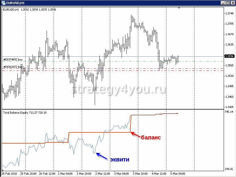 Биржевики и трейдеры, торгующие в терминале МТ4, пользуются индикатором Equity_v 7 — скачать можно по ссылке equity_v7_mod, который создан разработчиками для удобства пользователя, проводящего анализ данных и следящего за состоянием своего демо-счета.