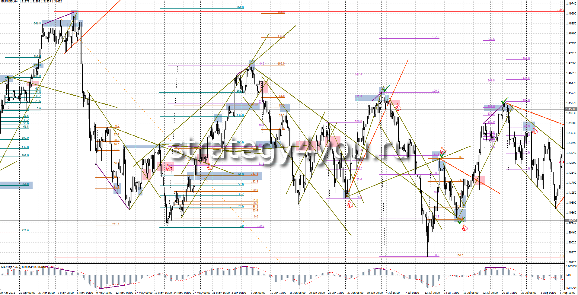 - Масса индикаторов, методов построения графика (японские свечи, бары, Ренко, Heiken Ashi).