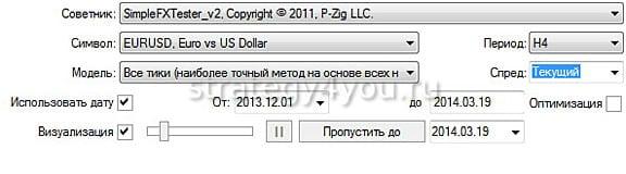 Управление тестированием осуществляется посредством использования внешней программы, которая поставляется в комплекте с советником. Система не слишком удобная, предполагает длительную проверку стратегий через нее, но настраивается просто и актуальна для некоторых систем.