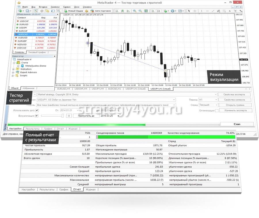 Главные достоинства тестера стратегий: