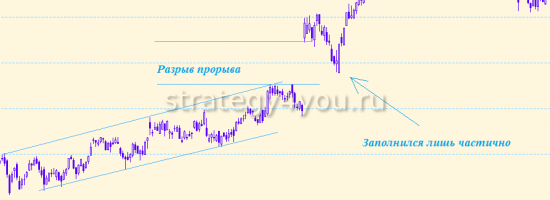 Но иногда разрыв не закрывается, цена продолжает движение. Так случается, если тренд сильный, происходят события в экономике или в политической сфере или оказали влияние фундаментальные факторы.