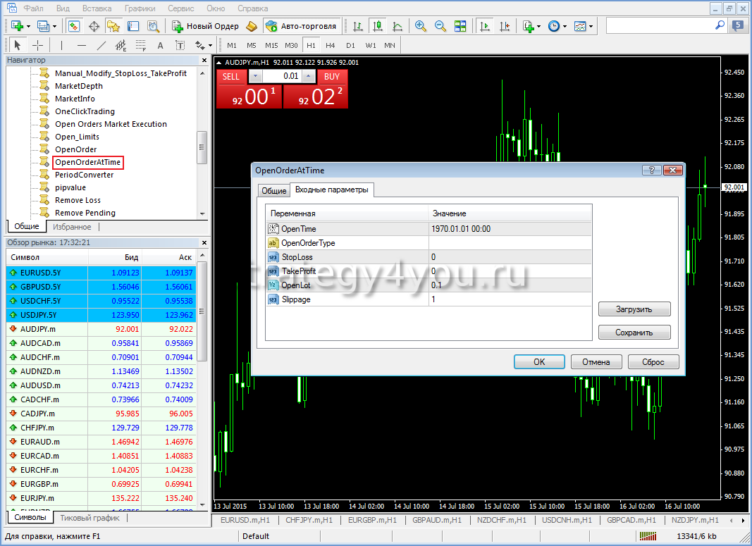 - При определении оптимальной точки открыть ордер (вручную или в автоматическом режиме, как только цена дойдет до нужной отметки) – продать/купить валюту.