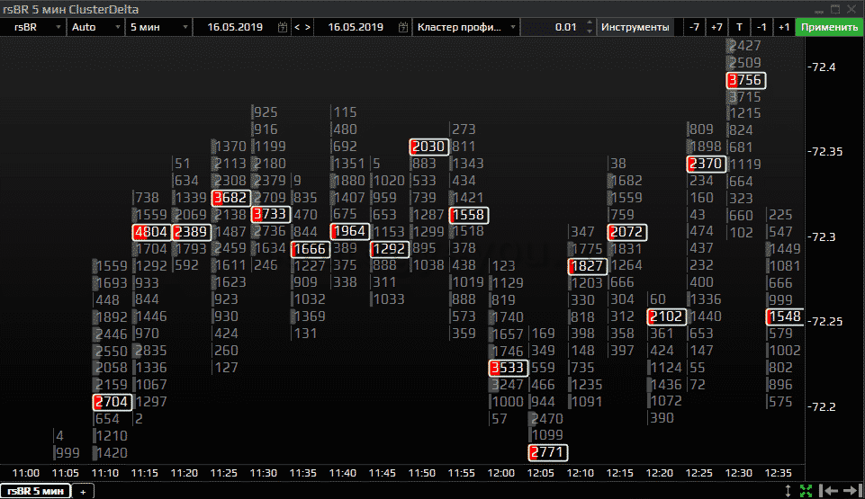 Трейдеру не придется изучать поток ордеров, все требуемые для работы данные есть на кластерном графике.
