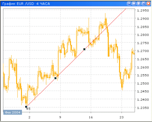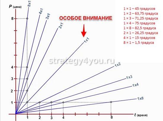 Угол Ганна 45 градусов — определяется при помощи линии Gann