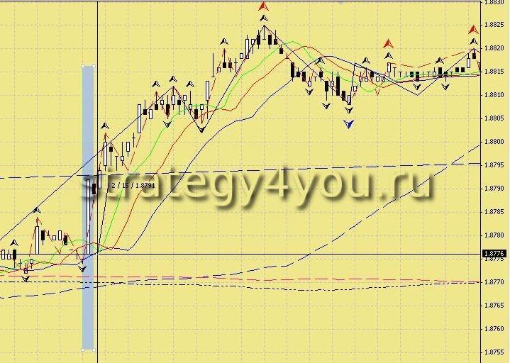 За несколько минут до публикации отчета следует прочертить 2 горизонтальные линии, отступив от отметки, указывающей текущую цену на 5-10 пунктов вниз и вверх. После публикации доклада трейдер ожидает появления нового показателя за пределами отмеченных линий и открывается сделка автоматически по отложенным ордерам. Операция длится до 20 минут.