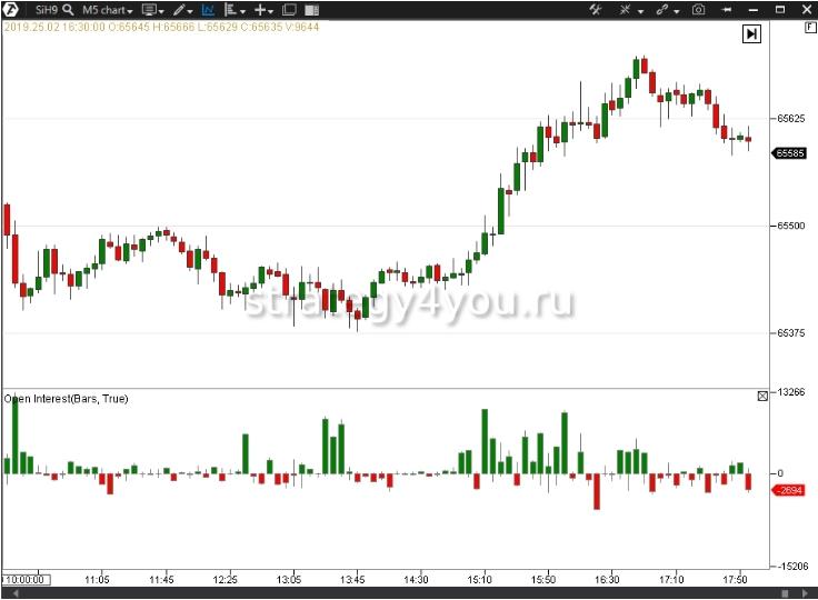 В последнем варианте развития ситуации рост ОИ в дальнейшем становится началом «игры на понижение», а падение ОИ, наоборот, указывает на вероятность повышения цены в обозримом будущем. Крайне быстро реагируют на изменения ОИ фьючерсные контракты на курс рубля к доллару.