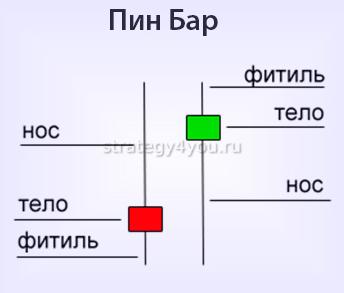 Под этим термином принято понимать комбинацию из трех свечей, средняя из которых имеет длинную тень (нос или хвост). Она обязательно должна выходить за пределы двух соседних свечей. Часто такой паттерн Price Action именуют “Пином” или “Пиноккио”. Появление этой фигуры на графике сигнализирует о скором развороте тренда.