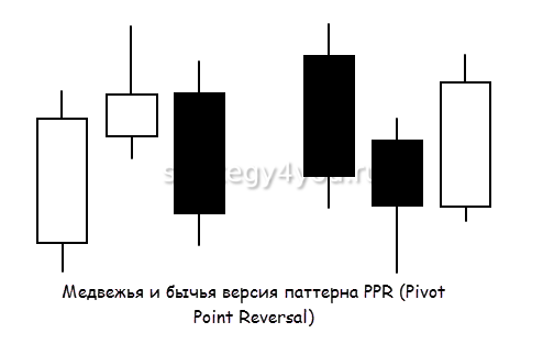 Такую комбинацию, как разворотный пивот, широко используют для построения разных стратегий. Разновидностей этой фигуры из 3 баров существует несколько, однако все они подчеркивают обнаружение УПС.