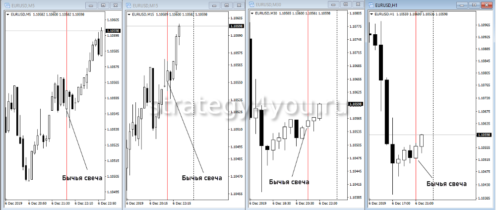 - Пример стратегии — опорные свечи: