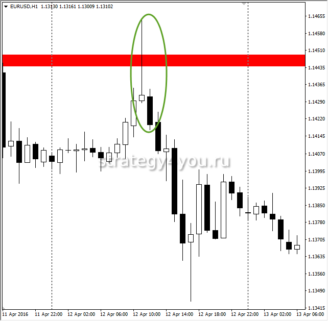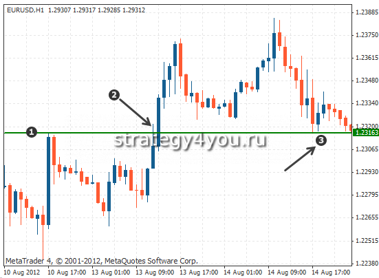 Тут вся тонкость торговли состоит в учете правила: если уровень был неудачно пробит, то стоимость может сделать мощный импульс в противоположную сторону. Эта закономерность используется для своевременного заключения выгодной сделки.