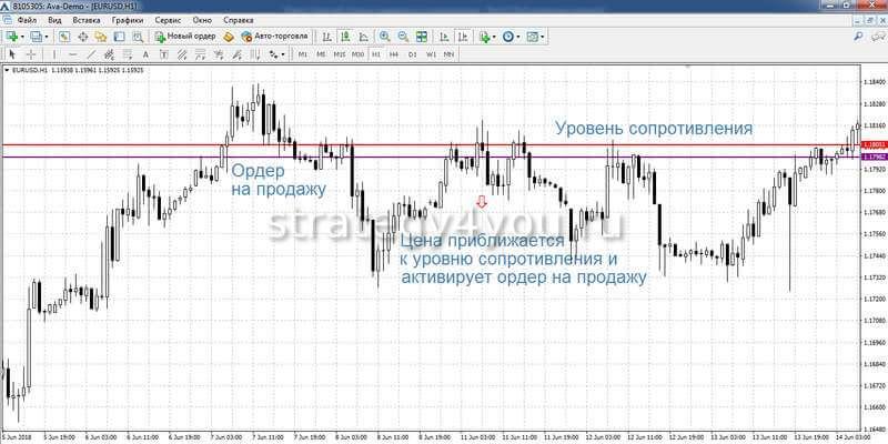Чтобы открыть сделку при отскоке от уровня поддержки или сопротивления, используют отложенные ордера. Если трейдер ждет продолжения тренда, то отбой случится при флете и сделки получаются краткосрочными, дают минимум прибыли, поэтому в таком случае часто открывают много позиций. Стиль торговли рискованный, новичкам его использовать не советуют.