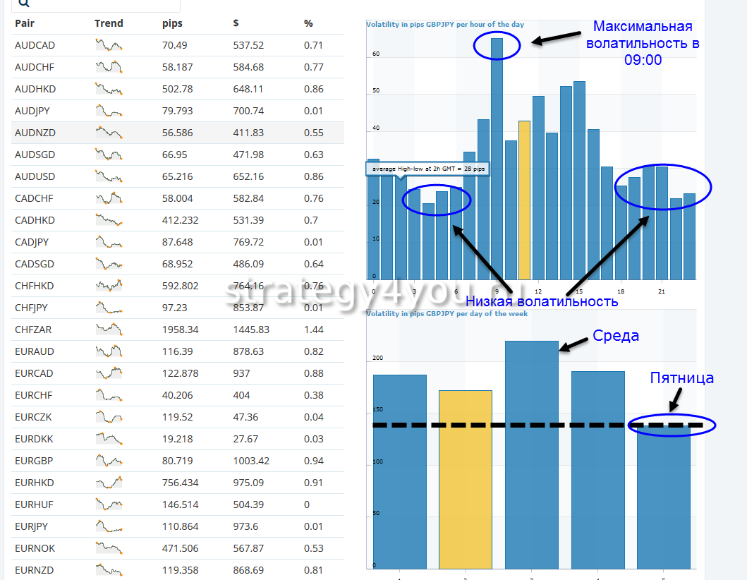 И обратная ситуация: зная, что пара проходит за неделю 200 пунктов, стоит входить в рынок в момент, когда она прошла лишь 25 пунктов – вероятнее всего, что потенциал для движения еще большой. Волатильность может меняться, но незначительно для конкретных торговых инструментов, как правило.
