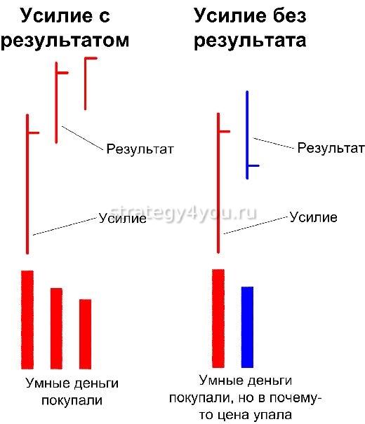 Перед тем как совершать сделку, трейдер должен открыть график и посмотреть, присутствуют ли на рынке крупные игроки. Каких-то жестких правил анализа не используется, правила изменчивы, и все зависит от того, как ведут себя объем и цена актива.