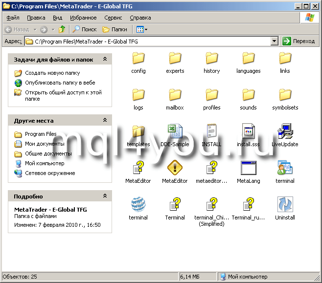 Вот структура папок установленного терминала Metatrader 4: