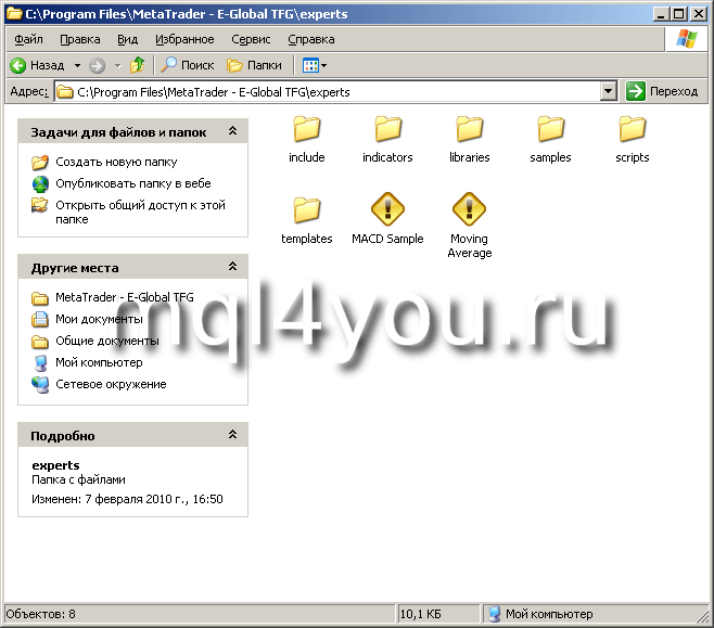 Как видно из рисунка, в папке experts есть еще несколько папок.