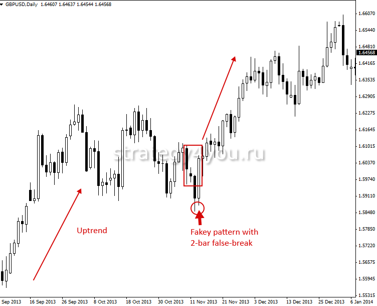 Торговать по паттерну Fakey можно в разных комбинациях: