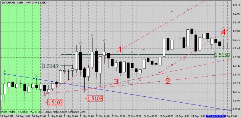 19. olezya : извиняюсь за молчание с интернетом проблемы. По поводу GBP/CHF — 20 день пересечения. 21 утром проводим трендовую линию вниз по фракталам см. рисунок. зеленые метки- открытие ордера и профиты, красные -стопы. принцип такой — ждем отката, рисуем линию вниз (синяя), на пробойной свече ордер. если пошло вверх — рисуем линию вверх (красная). Если тренд усилился корректируем (вторая красная).
