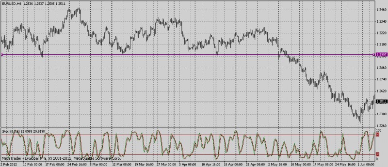 21. olezya : Ещё пример по Евро. Две сделки прибыльная и с убытком.При сильном движении можно проводить линию по мин/мах свечей. Stoch (8.3.3) по Low/High использую для дивергенции и подтверждения разворотов. На первой сделке четко видна дивергенция (пунктирные линии)