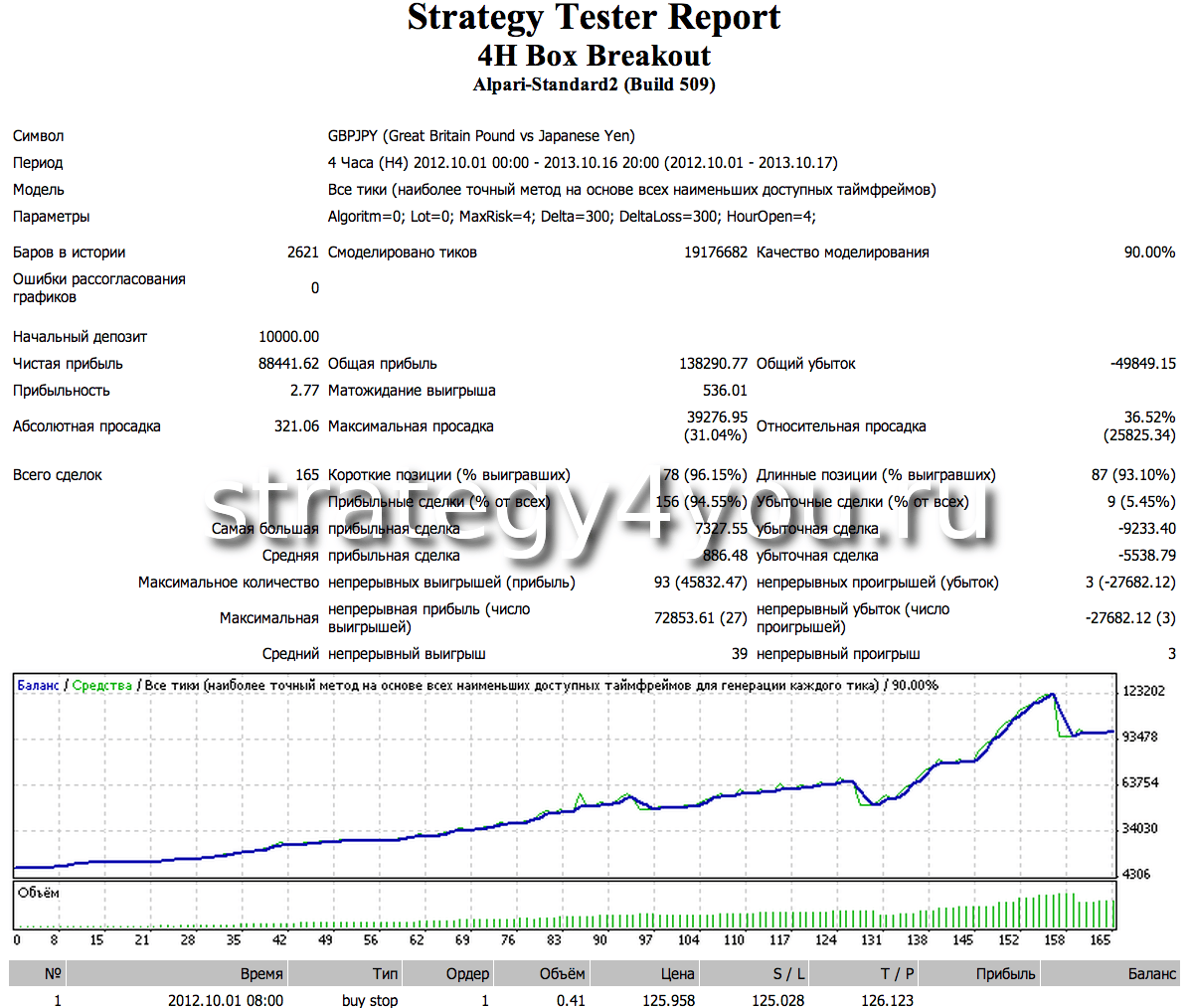 А теперь результаты тестов советника 4H Box Breakout, риск 2% от размера депозита, GBPJPY (H4):